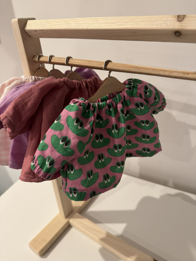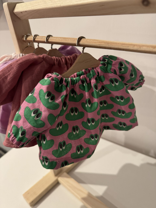 Tissu Oeko-tex, élastique au niveau du cou et des bras. Lavable en machine.